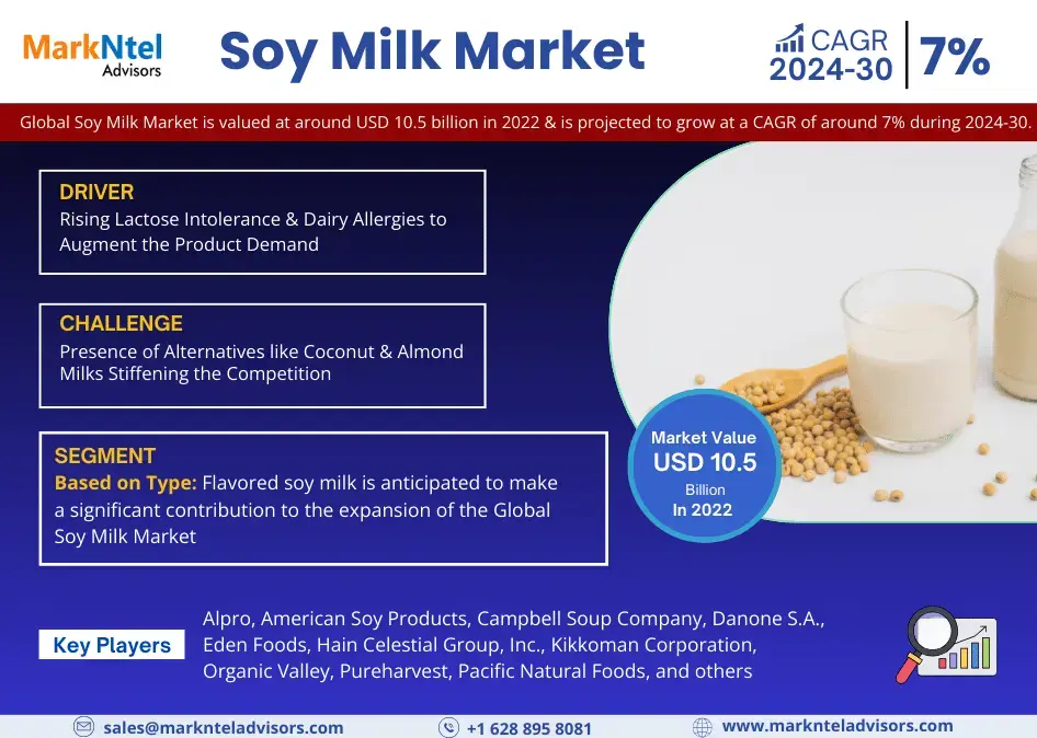 Soy Milk Market Set to Grow at 7% CAGR by 2030 – MarkNtel